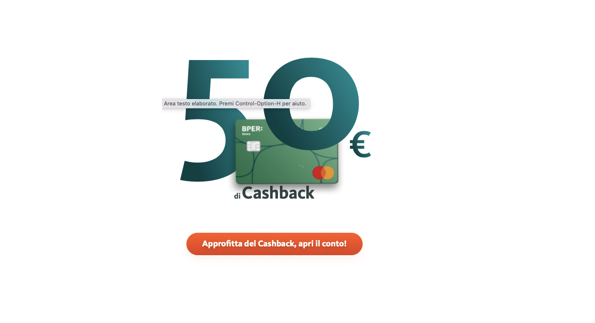 Oltre al costo zero sul canone, se apri il conto BPER On Demand entro il 31 maggio 2024, puoi beneficiare della promozione per ricevere in modo automatico sul conto, per i primi due mesi, 25 euro al mese (in totale 50 euro) di cashback. Come? Utilizzando la tua carta di debito Plus per pagare le spese mensili per un totale minimo di 250 euro. Per conoscere più dettagli dell’offerta di BPER Banca e aprire il conto, clicca sul link qui di seguito:
